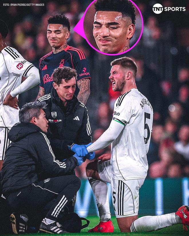 富勒姆后卫安诺生比赛中手指脱臼,队医给他复位时他都不敢看